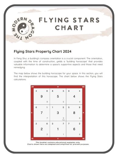 Every workplace has two layers of energy. The permanent chart is set when the building was constructed, while annual stars shift each year and bring fresh opportunities or challenges. The calculation grid shows the numeric star patterns that reveal where supportive or disruptive energies are located across your workspace.