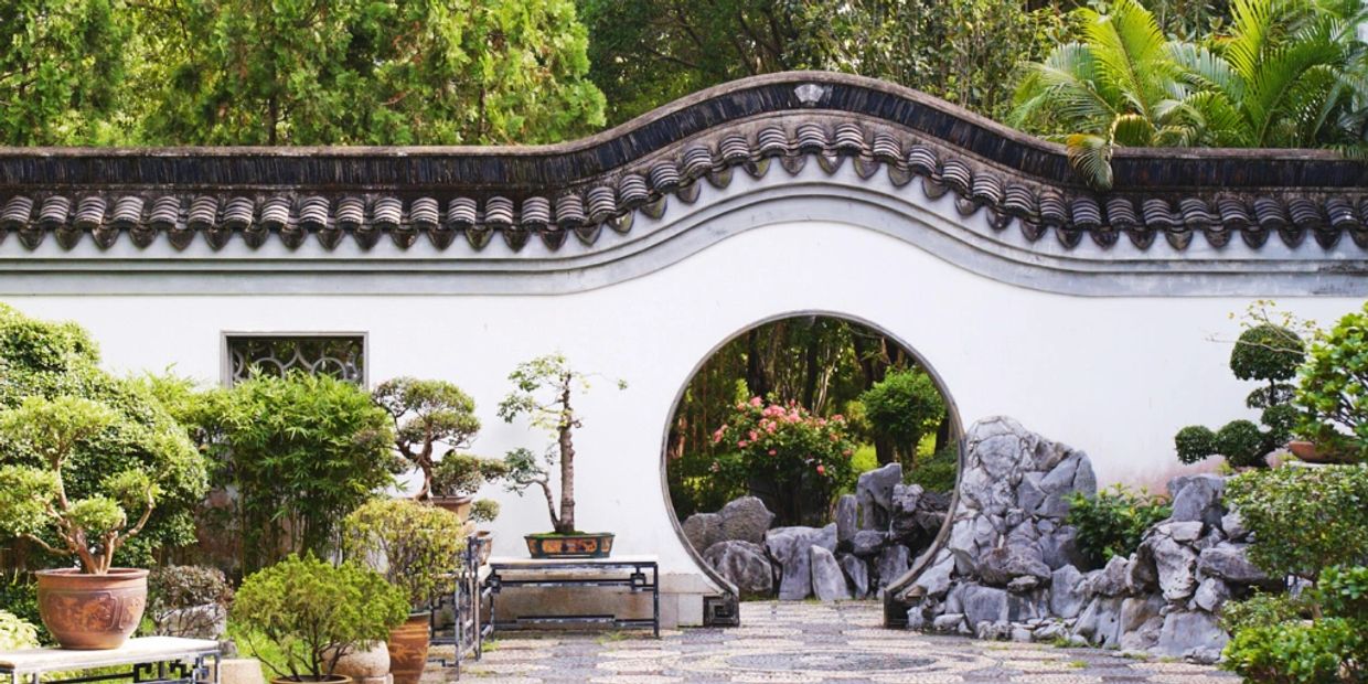 Moon Gates are circular openings symbolising harmony, unity, and smooth passage between different spaces.